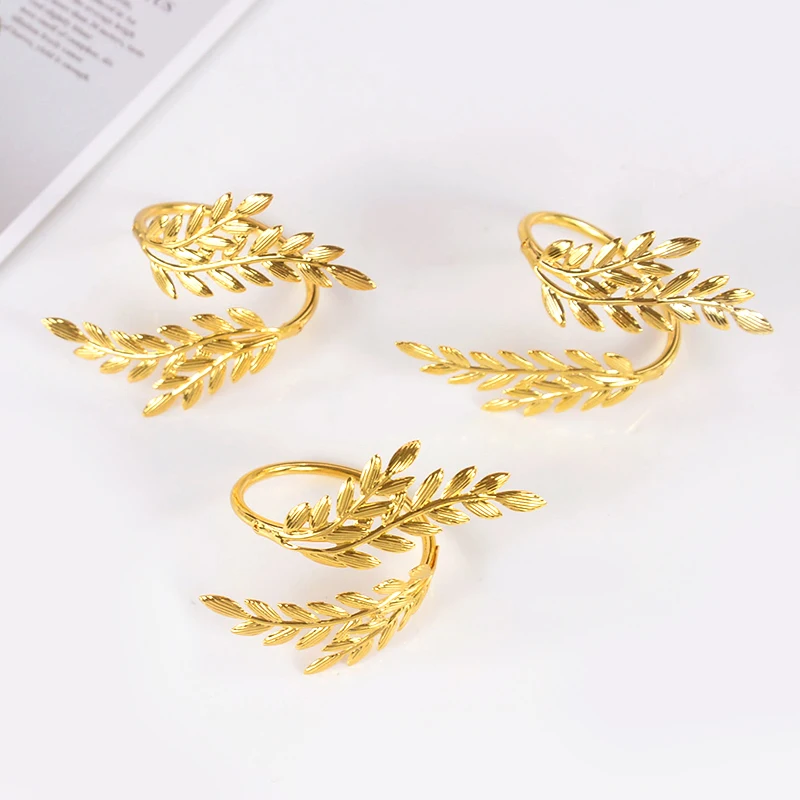 12pcs Gold Leaf Napkin Ring Buckles for Wedding Birthday Party Dinnig Table Decoration Christmas Thanksgiving Napkin Holder